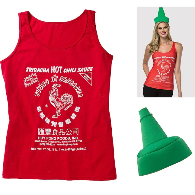 Become the living embodiment of your favorite condiment ever, the holy Sriracha hot chili sauce. I do recommend carrying around an actual bottle of Sriracha if you go out on Halloween like this, though — I mean, you’ve got to live up to your costume, and you never when you or someone else will need some.