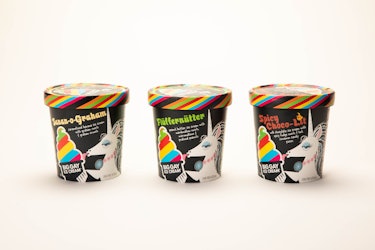 The expansion is great news, but you’re obviously here to learn about the incredible new Big Gay Ice Cream pints, so let’s talk flavors. There are three new flavors being released during the West Coast expansion: Banan-o-Graham, Flüffernütter, and Spicy Choco-Lit. Banan-o-Graham, which seems to be a play on three separate things (bananas, graham crackers, and the tile game Banagrams), is made with caramelized banana ice cream, graham swirls, and graham crunch. Flüffernütter is a peanut butter ice cream with marshmallow swirls, "micromallows," and peanut praline, because you can never have too many different variations of peanut and marshmallow in one container. The third flavor is Spicy Choco-Lit which is made with a milk chocolate ice cream base, spicy fudge swirls, and hot cinnamon candy pieces for more of a kick than the other flavors have.