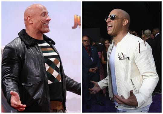 Dwayne "The Rock" Johnson and Vin Diesel have occasionally butted bald heads. (Photo: Getty Images, Associated Press)