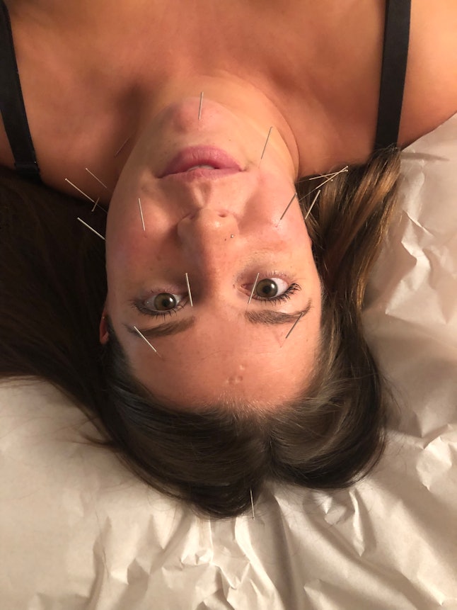 For my second treatment, which was five days after my first treatment, I saw two acupuncturists — one who specializes in headaches and one who specializes in facial acupuncture — so it was kind of like getting two treatments in one. The acupuncturists amped up the amount of needles in the other parts of my body besides my face to focus on my headaches. I got needled in my hands, toes, legs, and even my stomach! At the end of my treatment, I literally told the acupuncturists, "I’m so relaxed, I can’t feel my arms."