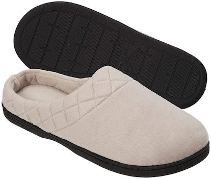 With a soft memory foam insole, these Dearfoams slippers boast the comfort you’d expect — all wrapped in a velour microfiber fabric that’s even more heavenly. The slip-on slides, which have a 4.5-star rating on Amazon, even come equipped with a durable rubber sole that makes them great for wearing outdoors. You can get ’em in a variety of colors including black and the pictured pewter shade.