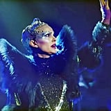 “Celeste is a powerful, strong, and dark individual, so it was necessary to express that through [her look],” the film’s head of makeup Anouck Sullivan told POPSUGAR. “As an unraveling pop star, she is quite literally hiding behind the makeup. The hair department head Esther Ahn and I wanted her to look otherworldly — and yes, we wanted there to be a lot of glitter.”