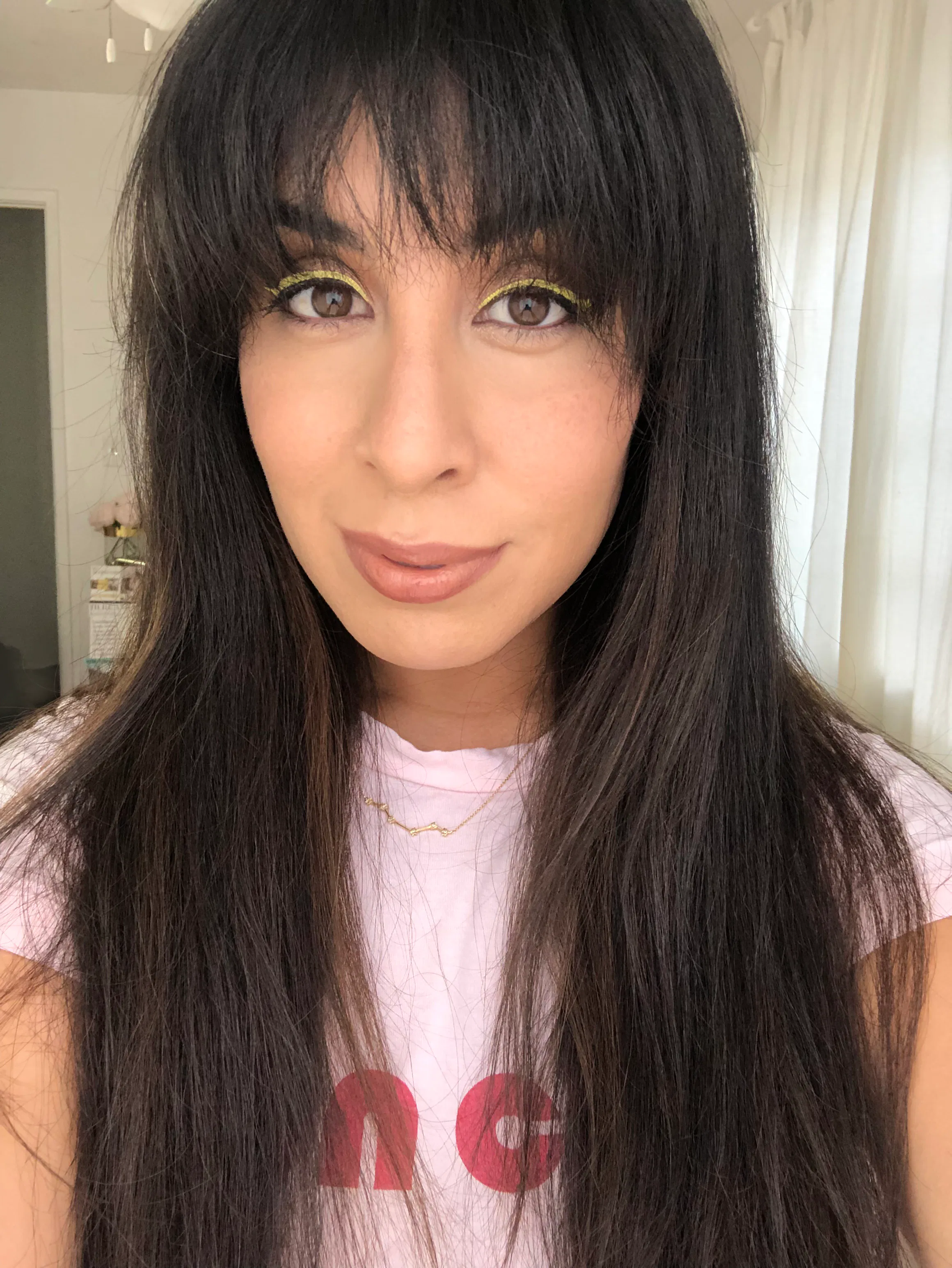 I applied my makeup just as I always do. I started with the Dr. Brandt Skincare Pores No More Pore Refiner Primer ($45, sephora.com) and applied my Fenty Beauty Pro Filt’r Soft Matte Longwear Foundation ($35, sephora.com) with a damp Beautyblender Sponge ($20, sephora.com). After doing my eye makeup — which included my new Fenty Beauty Baecae Vivid Liquid Eyeliner Trio ($35, fentybeauty.com) — my contour, and swiping on some blush, I finished off my look with a nude lip. Usually, this is when I’d pile on the setting powder, but instead, I opted for the Tatcha The Satin Skin Mist.