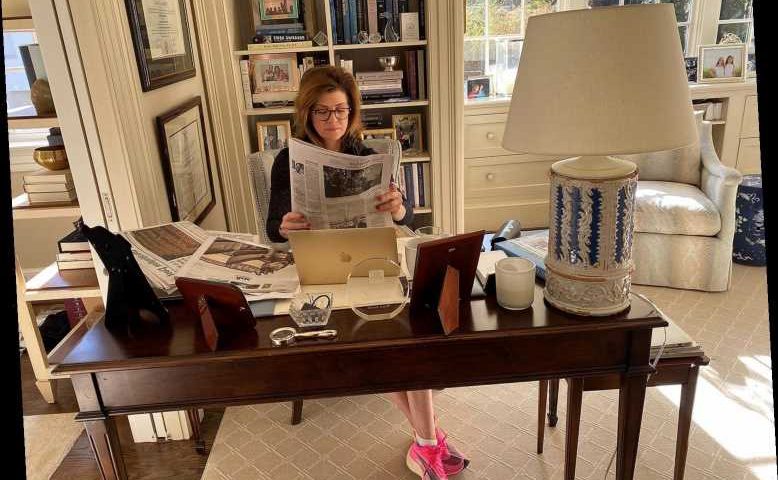 “Right now, I’m a work-at-home mom and the managing editor of the CBS Evening News,” she says. “I was on a call with someone from…