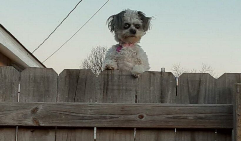 A 'demon dog' has terrified people online after someone shared a snap of it leaning over a fence and giving its neighbours a fearsome 'death…