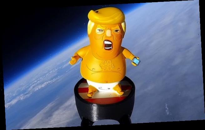 Baby Trump ‘bobble-head’ figurine is launched into space on a weather balloon as the President of the United States finishes his visit to the UK…