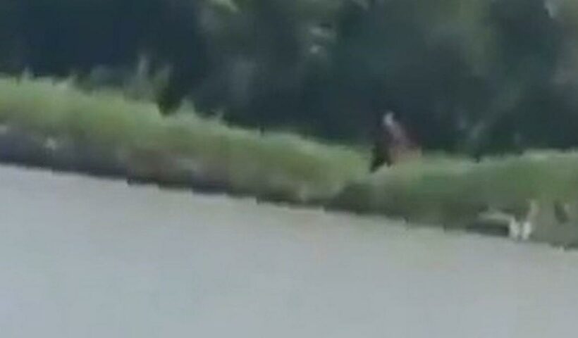 A fisherman was left terrified after spotting a mysterious 'half-man, half-dog' beast on the riverbank – but new analysis by an expert suggests it could…
