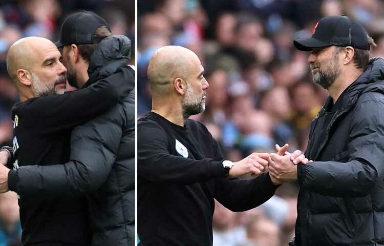 FANS have been left baffled by Pep Guardiola's ferocious handshake with Jurgen Klopp yesterday. Manchester City had just played out a pulsating 2-2 draw with…