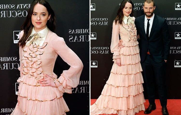 DAKOTA Johnson went for retro glamour at the Fifty Shades Darker premiere in Madrid on Wednesday evening. The 27-year-old wore a pink, ruffled Gucci gown which…