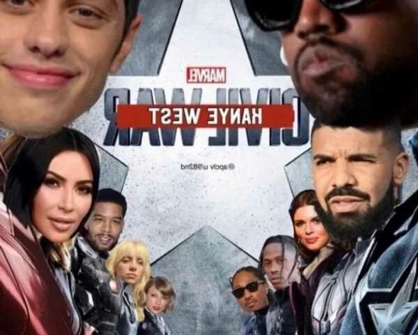 KANYE West has declared himself in a war with ex Kim Kardashian and her new boyfriend Pete Davidson. The rapper, 44, jumped onto a meme…