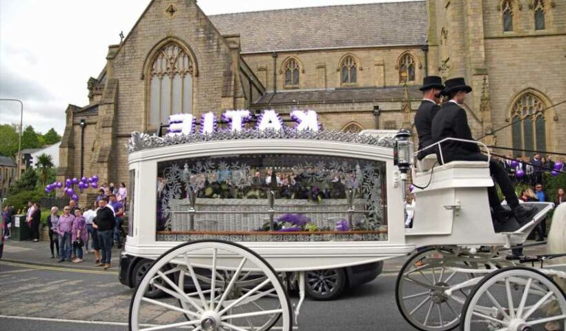 HEARTBROKEN mourners are today saying a final goodbye to a mum-of-two found dead after she was last seen getting into a van. Katie Kenyon, 33,…