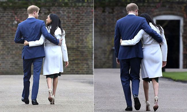 Harry and Meghan couldn’t contain their excitement while posing for the first photographs together at Sunken Gardens in Kensington Palace after announcing their engagement.