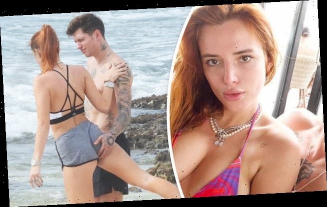 Bella Thorne dons sports bra and tiny shorts as she does a VERY hands on workout with boyfriend Benjamin Mascolo while vacationing in Tulum