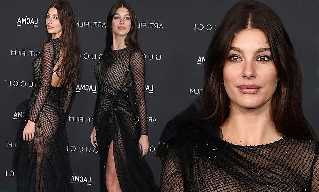 Leonardo DiCaprio’s girlfriend Camila Morrone, 24, leaves little to the imagination in SHEER netted gown with a dramatic leg slit at LACMA’s tenth annual Art + Film Gala