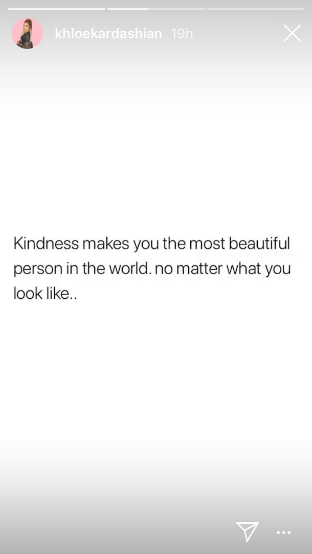 If that wasn’t clear enough, the fitness guru continued, "Kindness makes you the most beautiful person in the world. no matter what you look like…" OK, Khloé.