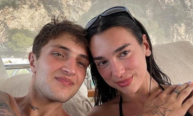 ‘My love’: Fresh-faced Dua Lipa puts on a loved-up display with boyfriend Anwar Hadid as they cosy up on the back of a boat in Albania
