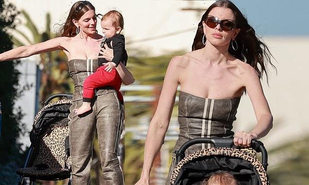 Quality time: The 32-year-old actress was seen out in Los Angeles in an all leather outfit, spending quality time with her 13-month-old son