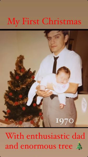She even joked about it in her caption, writing: “My First Christmas,” while adding: “With enthusiastic dad and enormous tree.”