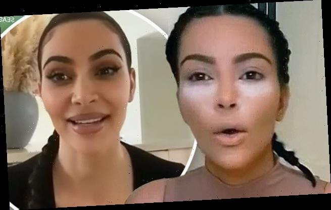 Kim’s daughter North walked into the bathroom as Kim was shooting the makeup tutorial, and Kim whispered to the camera” ‘My kids will not leave me alone.’