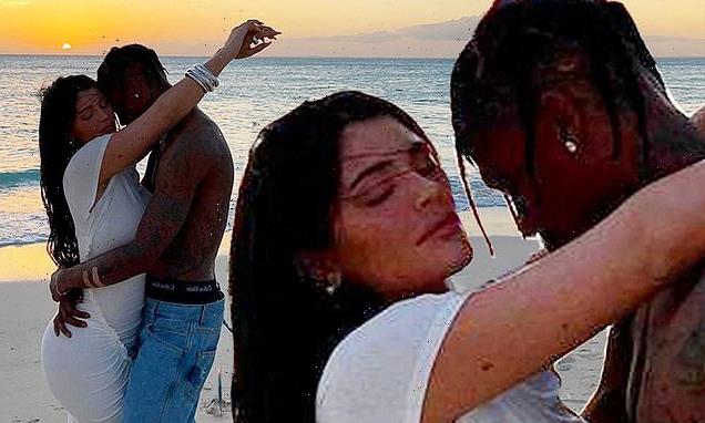 Kylie Jenner wraps her arms around a shirtless Travis Scott in romantic seaside snaps… as the rapper plots career comeback six months after Astroworld tragedy left 10 dead