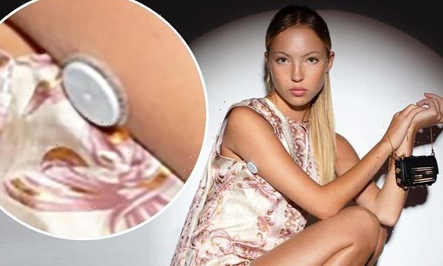 Lila Moss carries a tiny Versace and Fendi handbag and reveals monitor she wears to moderate her Type 1 diabetes in stunning campaign