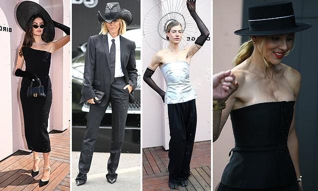 Elsa Pataky shows off her cleavage in a sexy little black dress, Christian Wilkins wears a corset and Tayla Damir and Pip Edwards opt for androgynous looks as celebs party at Derby Day