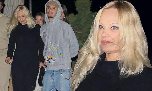 Pamela Anderson, 54, is sleek in a black dress as she and son Dylan Jagger Lee, 24, dine at Nobu Malibu… after she filed for divorce from her bodyguard husband Dan Hayhurst