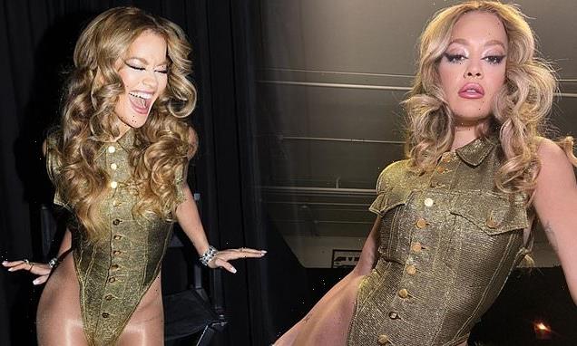 Rita Ora parades her incredible figure in gold bodysuit as she shares behind-the-scenes snaps from performance at the Women’s Rugby World Cup