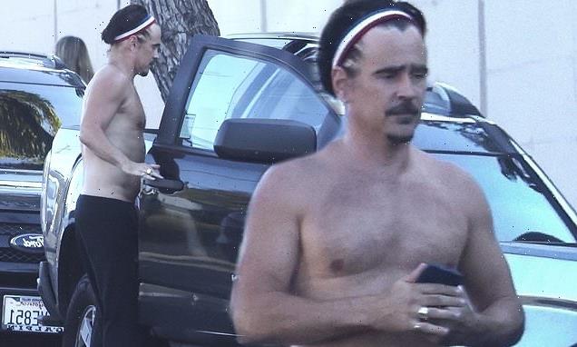 Shirtless Colin Farrell, 45, shows off his toned torso