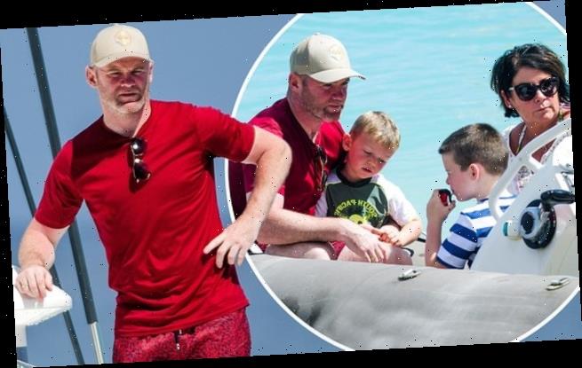 The footballer, 33, doted on his three children, Kai, nine, Klay, 6 and Kit, three, (Cass has stayed in the UK with Coleen) as they enjoyed a boat ride with Coleen’s mother Colette and father Tony.
