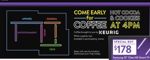 If you do head to Walmart on Thanksgiving, you can get yourself some free cocoa and cookies to energize you for your shopping spree. Per the Walmart ad, you can get "hot cocoa & cookies at 4 p.m." Yum! Sounds like a great start to your Black Friday festivities.