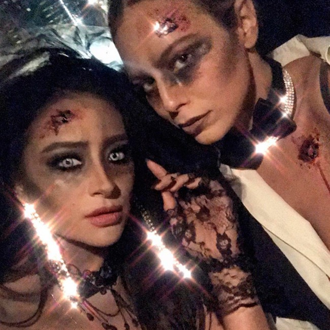 Former The Hills star used black lipstick and eye liner to create a last minute Frankenstein Groom look.