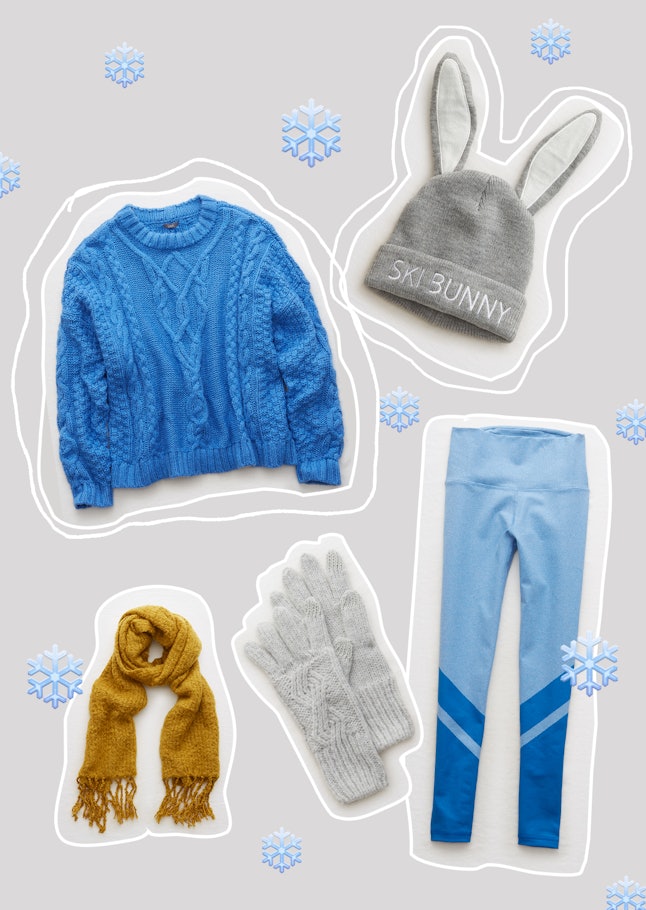 Cable Sweater, Leggings, Blanket Scarf, Light Up Beanie, Cable Knit Texting Gloves, Aerie.