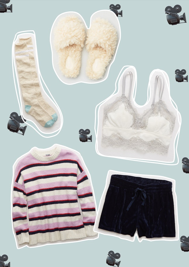 Sweater, Velvet Shorts, Socks, Bralette, Slippers, Aerie.