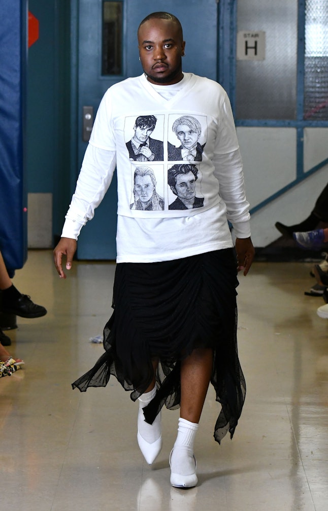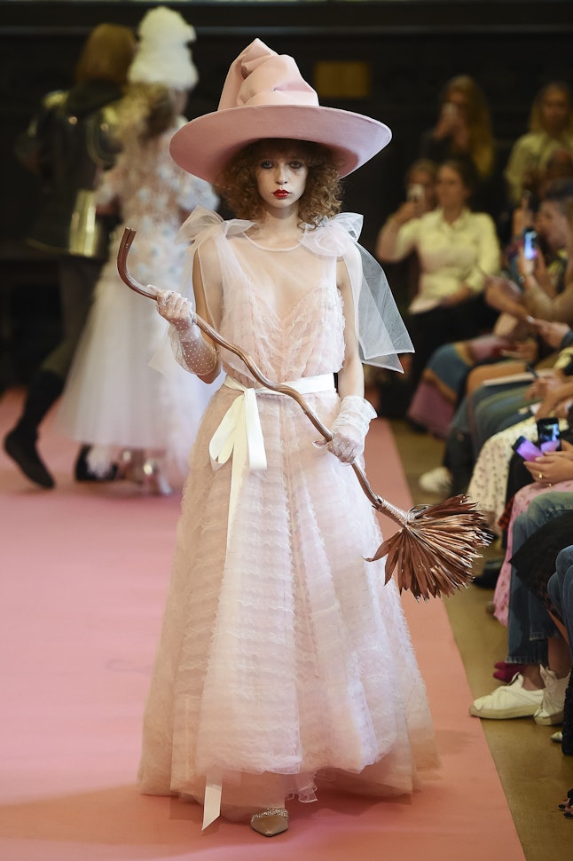 Hi collection was entitled "Saturn Returns," and it was meant to be a mystical, fairy-tale-like collection full of fairies, witches, and spells, leaning heavily on romantic materials like tulle, ruffles, and chiffon. "Full-on pretty, full-on princess, full-on fairy tale," Vogue explained. "Thus the various fairy godmothers in bewitching Stephen Jones millinery wielding vaguely pagan Harry Potter broomsticks, plus that fairy-tale ending."