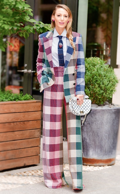 The Hollywood star has been out more than usual, promoting her new movie, A Simple Favor. And, her promo tour wardrobe is insanely amazing. Since Friday, she’s been spotted in six suits of various fits, colors and patterns. Each one was standout in its own right, but worn back-to-back, these looks created a fall wardrobe that’s well-suited for the fashion obsessed.