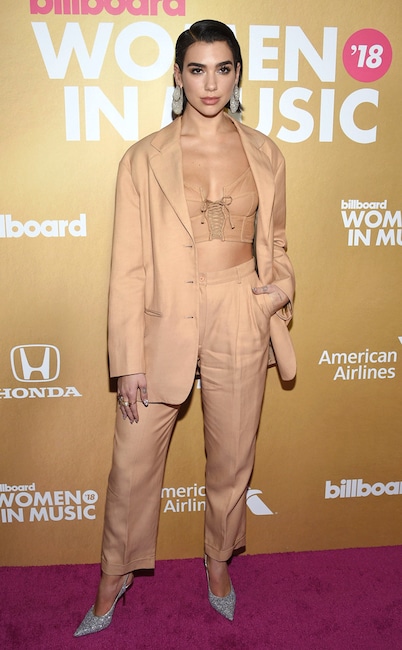 The “One Kiss” singer dons a nude ensemble as she attends the 2018 Billboard Women in Music in New York City.