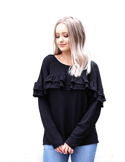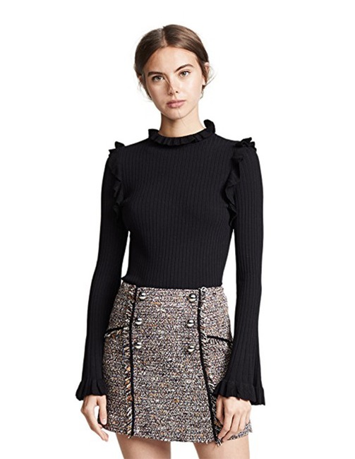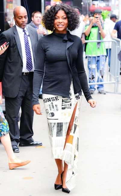 To jazz up the black turtleneck trend, Taraji P. Henson opted for a sweater with ruffle details. The resulting look has all of the benefits of your basic turtleneck, yet adds something extra for a standout piece.