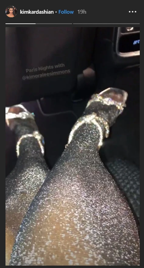 The beauty mogul also posted a part of her look onto Instagram Stories. While in the car, Kardashian took a quick video of her shimmering heels, captioning the bold #OOTD detail shot, "Paris Nights with Kimora Lee Simmons."