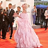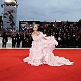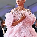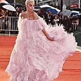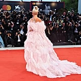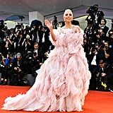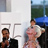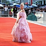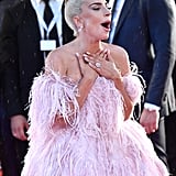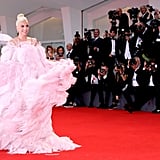 Lady Gaga brought regularly scheduled programming everywhere to a halt on Friday afternoon when she arrived on the red carpet at the Venice Film Festival. Accompanied by her A Star Is Born costar Bradley Cooper, who helped her out of the limo when she showed up to the scene, Gaga made a statement that was echoed on social media feeds everywhere.