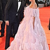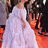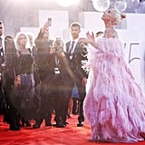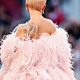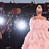The songstress, with the help of stylists Tom Eerebout and Sandra Amador, chose a Valentino Couture creation, aptly called the “Flamingo” by the house’s creative director, Pierpaolo Piccioli. It was covered in way more pink feathers than we’ve ever seen at once, to say the least.