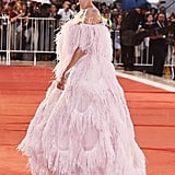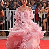 Twirling under the raindrops, her Chopard jewels glistening, Lady Gaga embraced the whimsical look, and boy, did she make it seem easy. But we can’t very well imagine this gown was as light as it appeared to be. Here’s fair warning: you’ll want to scroll through the shots from this movie premiere for hours, and it’s all thanks to this imaginative confection of a dress.
