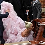 Lady Gaga’s Gown Has More Pink Feathers Than a Flock of Flamingos at the Zoo