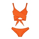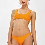 She opted for a sexy burnt orange bikini with high cut bottoms for Austin’s birthday festivities, showing off her toned abs and legs. Vanessa paired the sporty two-piece with a long retro coat and dangling earrings, adding a boho touch to her Summer ensemble. Check out some swimsuits similar to Vanessa’s ahead and rock a similar vibe during your next pool party.