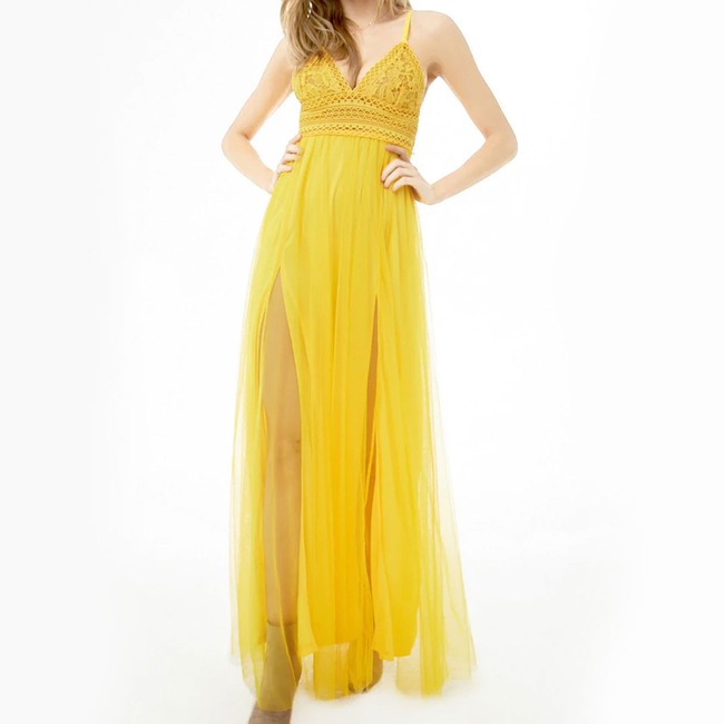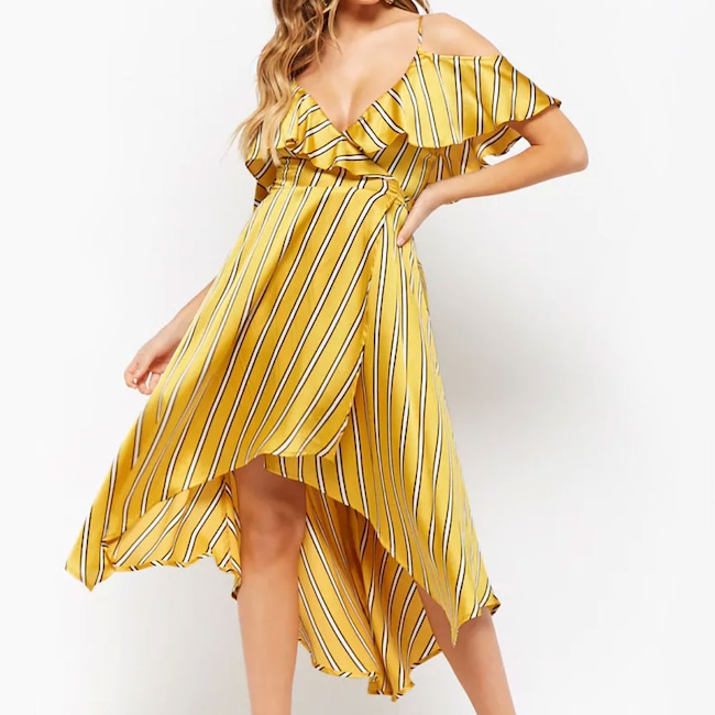 This fluttery yellow dress is just asking to be worn to an outdoor wedding.