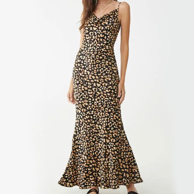 Abstract Leopard Print Maxi Dress