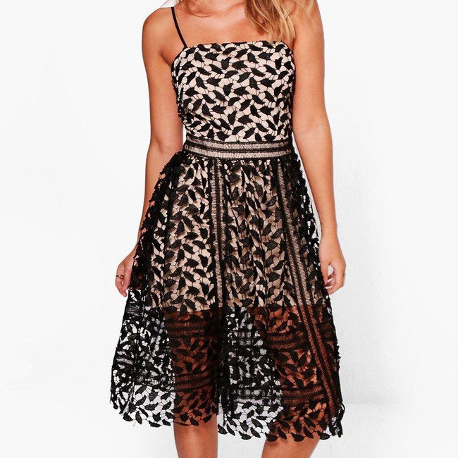 Corded Lace Detail Midi Skater Dress