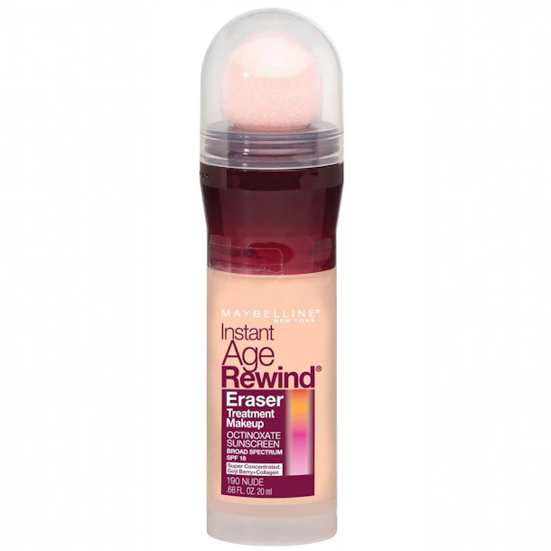 The concealer isn’t the only product in the Instant Age Rewind family — there’s also a primer and two foundation formulas. The Instant Age Rewind Primer Skin Transformer ($10, maybelline.com) is a pink-tinted primer that preps skin for makeup by smoothing and giving off a youthful glow. The Instant Age Rewind Radiant Firming Makeup ($10, maybelline.com) is infused with goji berry and caffeine, and includes SPF 18 as it works to give the skin a visibly firmer appearance and even tone. The Instant Age Rewind Eraser Treatment Makeup ($13, maybelline) has a similar formula and applicator to the concealer, and includes a goji berry and collagen infusion to enhance skin’s elasticity over time and create the appearance of fresher, younger skin as it covers.