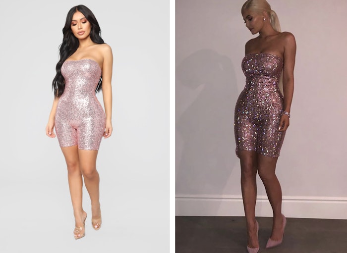You can see how Kylie Jenner was inspired with that same look, but made it all her own by transforming it into a strapless romper bursting with pink. And since so many people were agog over it, affordable retail store Fashionnova decided to create a dupe of it for a cool $35.