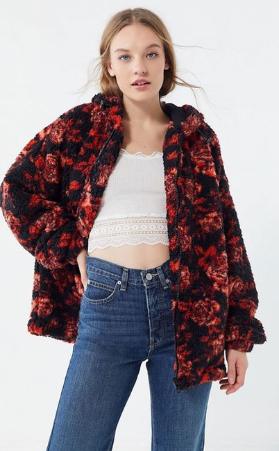 UO Wilma Floral Hooded Zip-Front Teddy Jacket